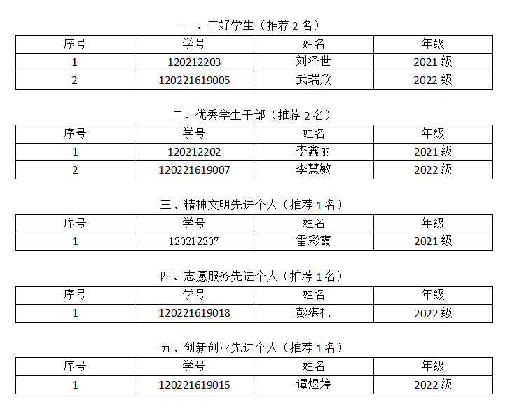 2.本表按学生年级顺序排序。