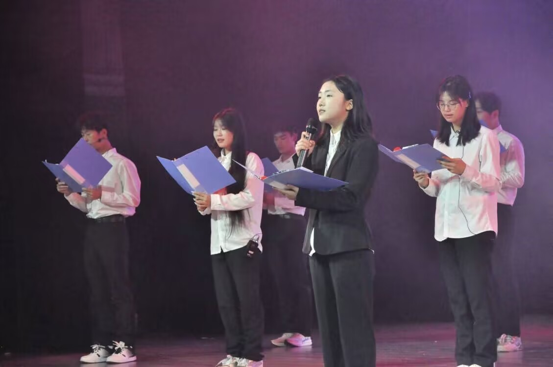 此外,晚会还特别设置了抽奖环节,全体师生踊跃参与,现场气氛热烈。而晚会的最后一个节目——诗朗诵《少年壮志耀千秋》与歌曲《我爱你中国》的联袂呈现,更是将全场氛围推向了最高潮。
