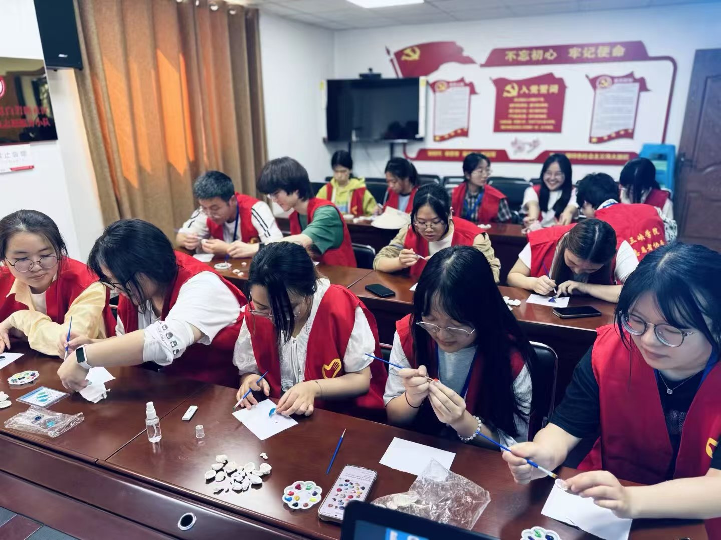 活动伊始,青年志愿者协会工作人员梅好进行了主题PPT讲解,向志愿者们科普与生物多样性相关的知识。其中,根据世界自然保护联盟2025年2月20日发布的数据,志愿者们了解到,全球超过46,300种物种面临灭绝危机,也认识到了全球生态环境所面临的严峻形势。随后,志愿者们使用贝壳、水粉颜料制作了贝壳手链并将其赠送给当地居民。最后,在工作人员带领下,志愿者们进入了社区图书馆阅读书籍。活动期间,志愿者们与社区居民沟通良好,积极完成了各项活动。