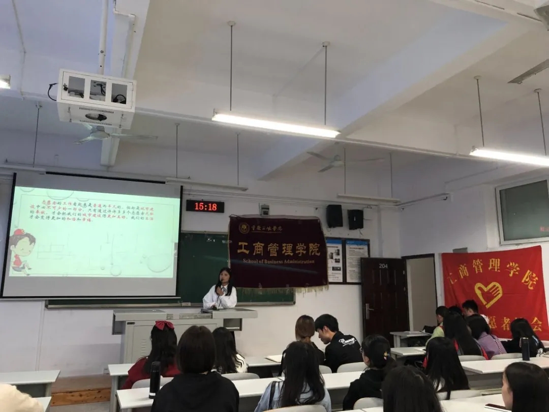 活动伊始,主持人通过展示PPT、志愿者公益片,讲解志愿者精神以及其协会开展过的一些活动等方面向同学们介绍了志愿者活动。活动过程中,还通过有奖问答的方式让同学们对志愿者活动有更深入的了解。随后,工作人员也解答了同学们的一些疑问。