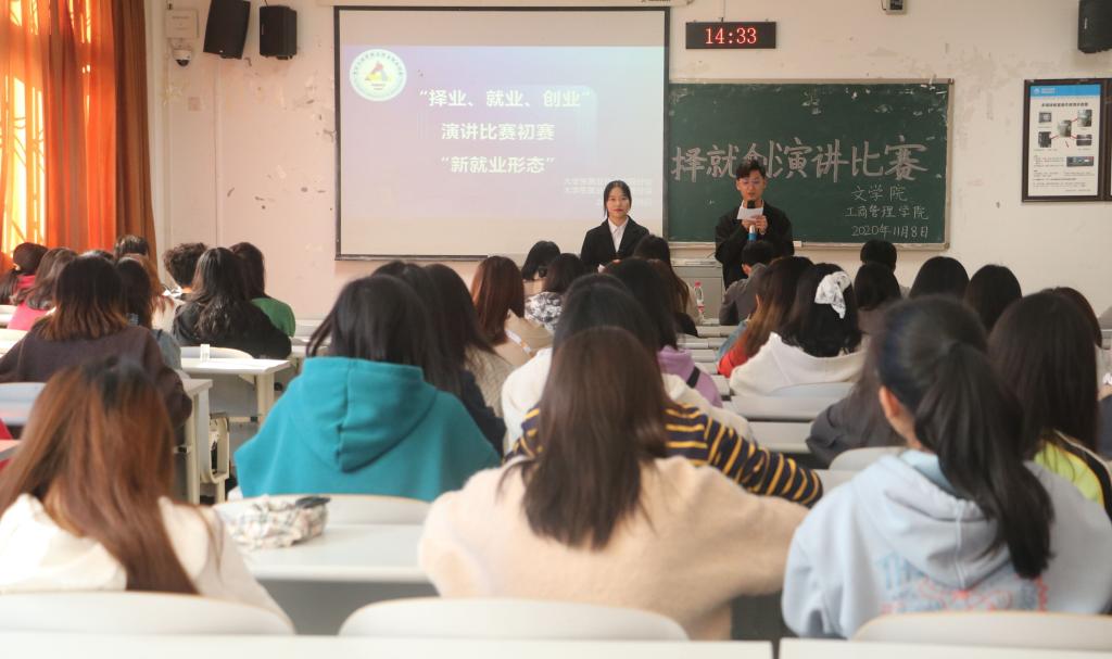 为提高大学生自主创业能力,培养大学生勇于探索、注重良好的实验品质,由OK138太阳集团、文学院联合举办的“择业、就业、创业”主题演讲比赛初赛于2020年11月8日14时30分在明辨楼1栋202室顺利开展。