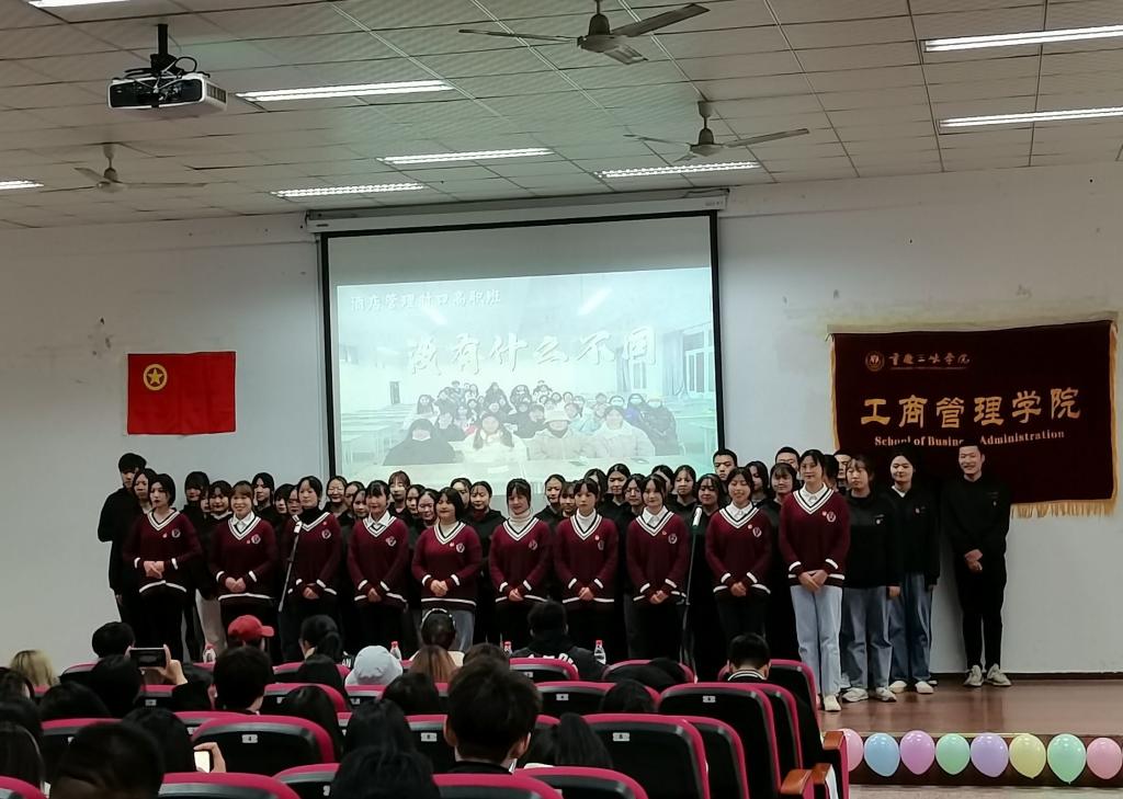 同学们集思广益,多种艺术种类相结合,尽展青春风采。同学们把对班级的热爱、对美好生活的憧憬、对远大理想的追求,都融进了美妙的歌声中,充分展示了班风班貌。歌声寄托着工商学子的希望,承载着同学们的梦想。