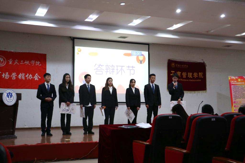 随着主持人的赛前规则和评审介绍后,选手们便开始了紧张而又激烈的比赛。参赛选手们身着西服,仪态端庄,谈吐自如地从公司发展、产品选择等多方面汇报自己队伍的营销策划方案及实践成果。其形式丰富的汇报让人耳目一新,种草视频也是创意十足,趣味十足。在答辩环节中,选手们也沉着冷静,随机应变,依次回答了评委们提出的问题。