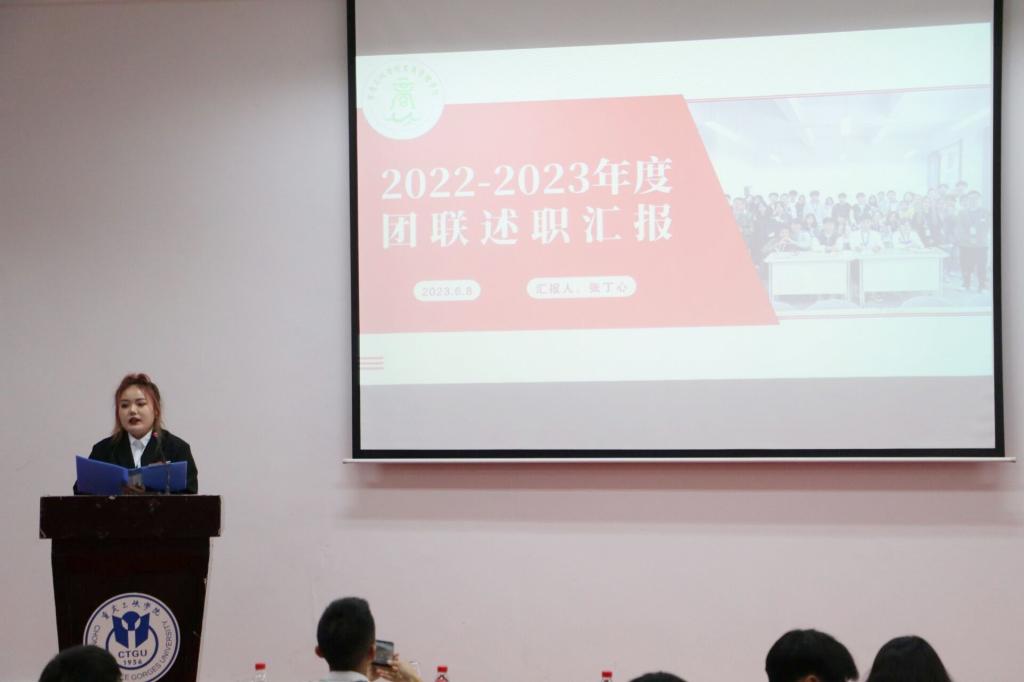 主席团成员张丁心以及各协会负责人以PPT的形式分别从政治态度、道德品行、学习情况、工作成效和未来展望五个方面对2022-2023年度的工作进行了总结。