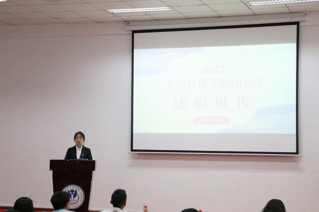 首先,团总支(学生)副书记倪俊琳以及团总支各部门述职人员分别从政治态度、学习情况、道德品行、工作成效和纪律作风五个方面对本学期工作进行了总结汇报,展示了我院学生干部出色的能力和认真负责的工作态度。