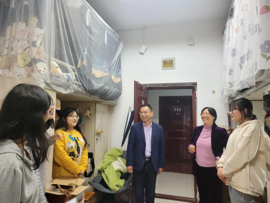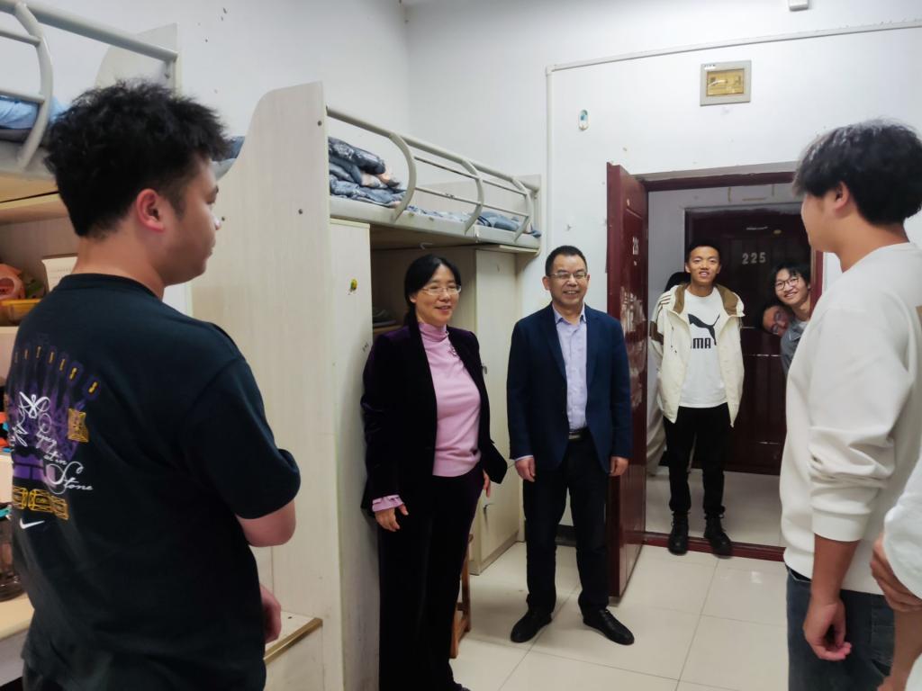 听课后,李中春副书记与师生亲切交谈,鼓励同学们要做保持良好精神面貌,不佛系不拖拉;做好学业规划,持续努力;注重课前预习和课后复习,积极请教。在走访寝室的过程中,刘亚兰书记耐心询问同学们学习和生活中的困难,并针对性地给予建议和指导,嘱咐同学们要严格遵守校规校纪,努力提升综合素养,要立志立方向并持续为之不懈奋斗。对于毕业班学生,刘亚兰书记就求职情况与同学们做了重点交流,提醒同学们要把握秋季求职的黄金时段,树立良好形象,提高求职技能,争取早日就业。