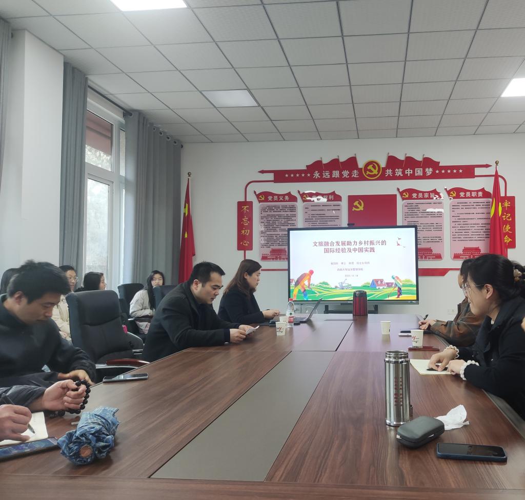 2023年12月14日上午,西南大学经济管理学院旅游管理学科负责人黄国庆教授应邀莅临我院进行学术交流,并开展题为“文旅融合助力乡村振兴的国际经验及中国实践”专题讲座。此次讲座由我院副院长童洪志主持,40余名师生参与。