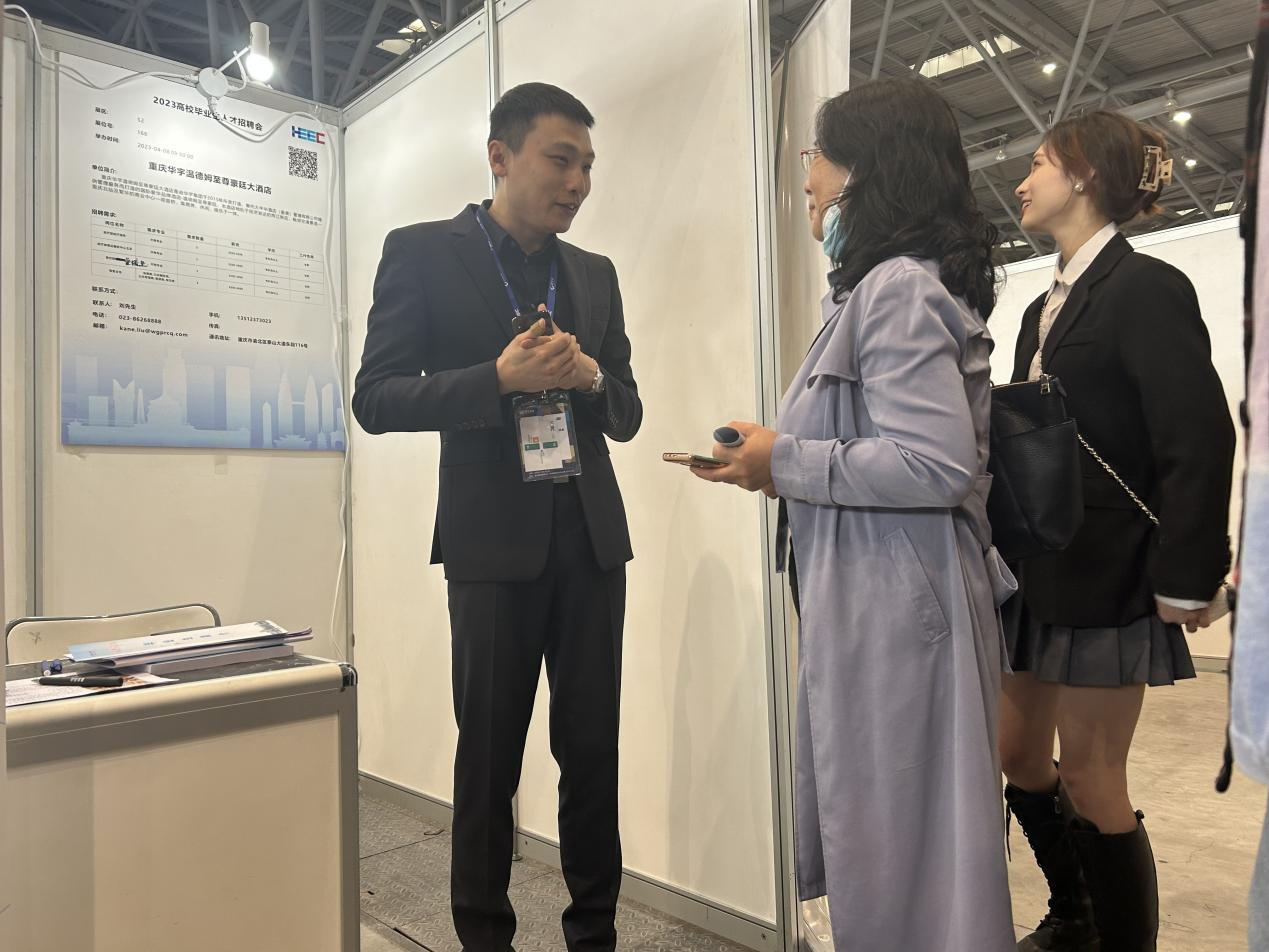 为进一步拓宽我院毕业生就业工作渠道,2023年4月8日,我院党总支书记刘亚兰和就业辅导员来到重庆第58·59届中国高等教育博览会西南地区专场人才招聘会现场进行“访企拓岗”调研,搭建校企交流合作平台,深化学校和用人单位的供需对接。