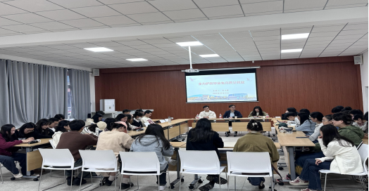 首先刘处长通过询问同学们未来规划的方式,对当前毕业年级存在的问题进行解释和分析。接着主讲人在会上通过分享身边人的故事,鼓励毕业生抓住机会,放眼长远。然后主讲老师提出让同学们利用好网络积极地向外投简历,要勇于试错抓住机会的想法并表达了对毕业生未来的期待。会上同学们与老师积极交流沟通,气氛轻松活跃。