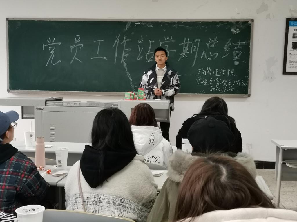 临近期末,为推动我院学生公寓党员工作站更好发展,提高工作站成员工作的热情和质量,工作站于2020年12月30日中午12时30分在明辨楼1栋205召开了学期总结大会,唐卫老师及工作站全体成员参加此次大会。