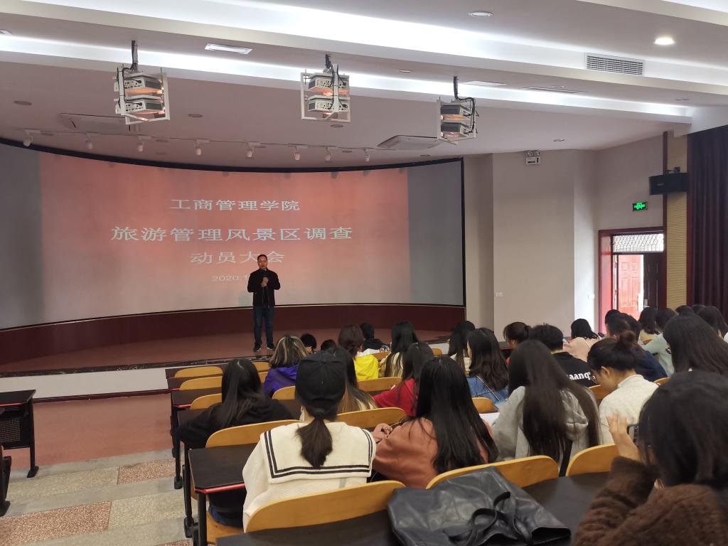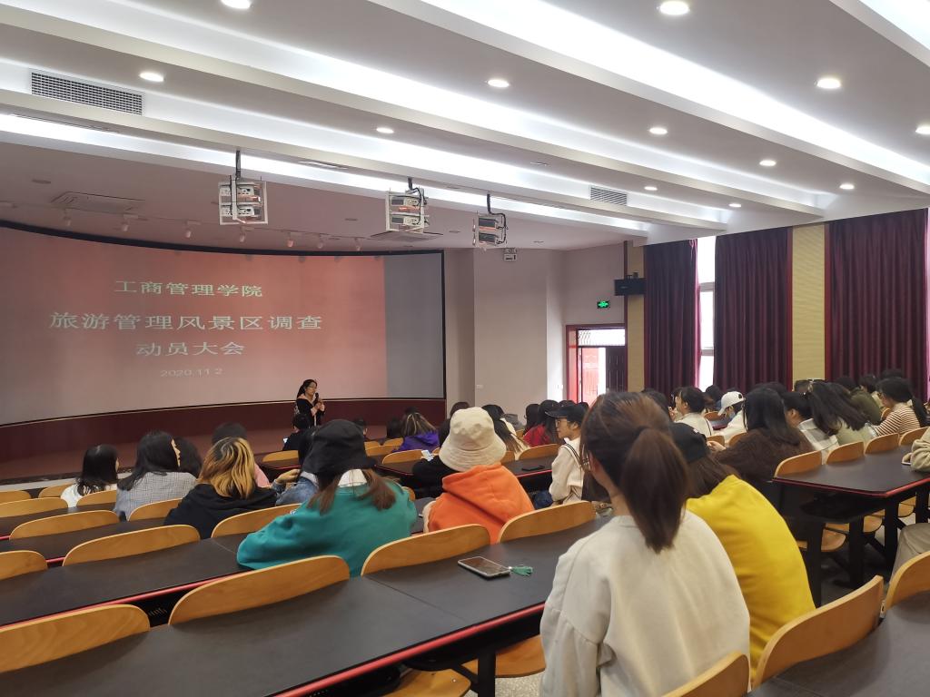 11月2日上午,我院在旅游3D实验室召开了旅游管理风景区调查动员大会。学院副院长于开红教授、旅游管理专任教师周学军、蒋秋华、管陈雷、徐晓庆等老师及2017级旅游管理专业学生参会。