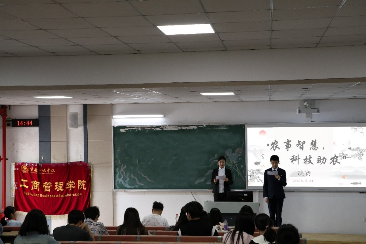 为弘扬中华优秀传统文化,激发科学首创精神,培养一批具有创新意识的新世纪合格人才,2024年5月9日14点30分,我院科技创新部与我院旅游管理专硕研究生共同在博学楼一栋101室举办了“农事智慧,科技助农”主题活动决赛,本次比赛由OK138太阳集团团总支副书记袁溢,大学生科技协会主席袁瑕蔚以及两位2021级旅游管理专硕的同学担任评委。