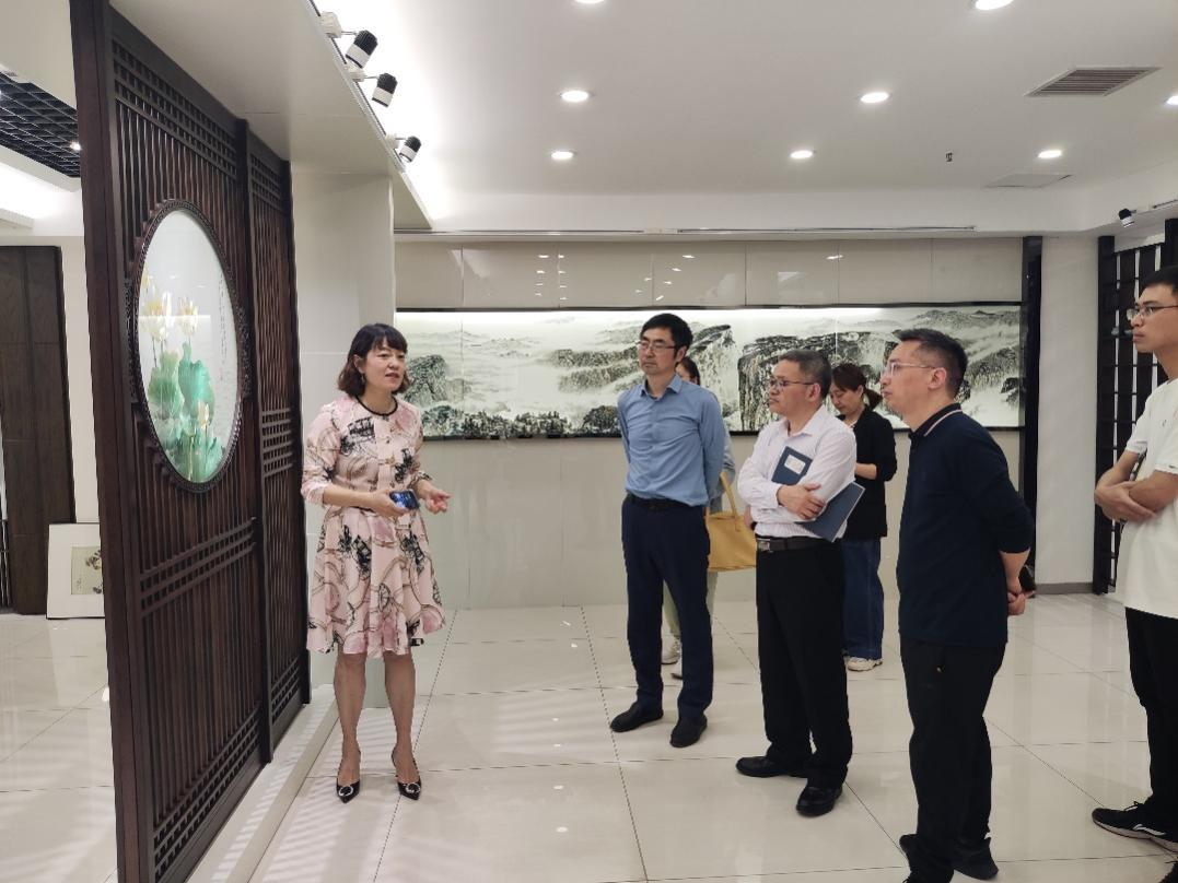 随后,大家在会议室就企业发展现状、战略规划、产业融合情况进行了交流探讨,三峡绣公司充分利用3D、AR、AI等技术,结合用户DIY的个性化需求研发了全国首家高端文创产品定制平台,实现了“研发数据化、生产标准化、平台智能化、产品定制化”的目标。